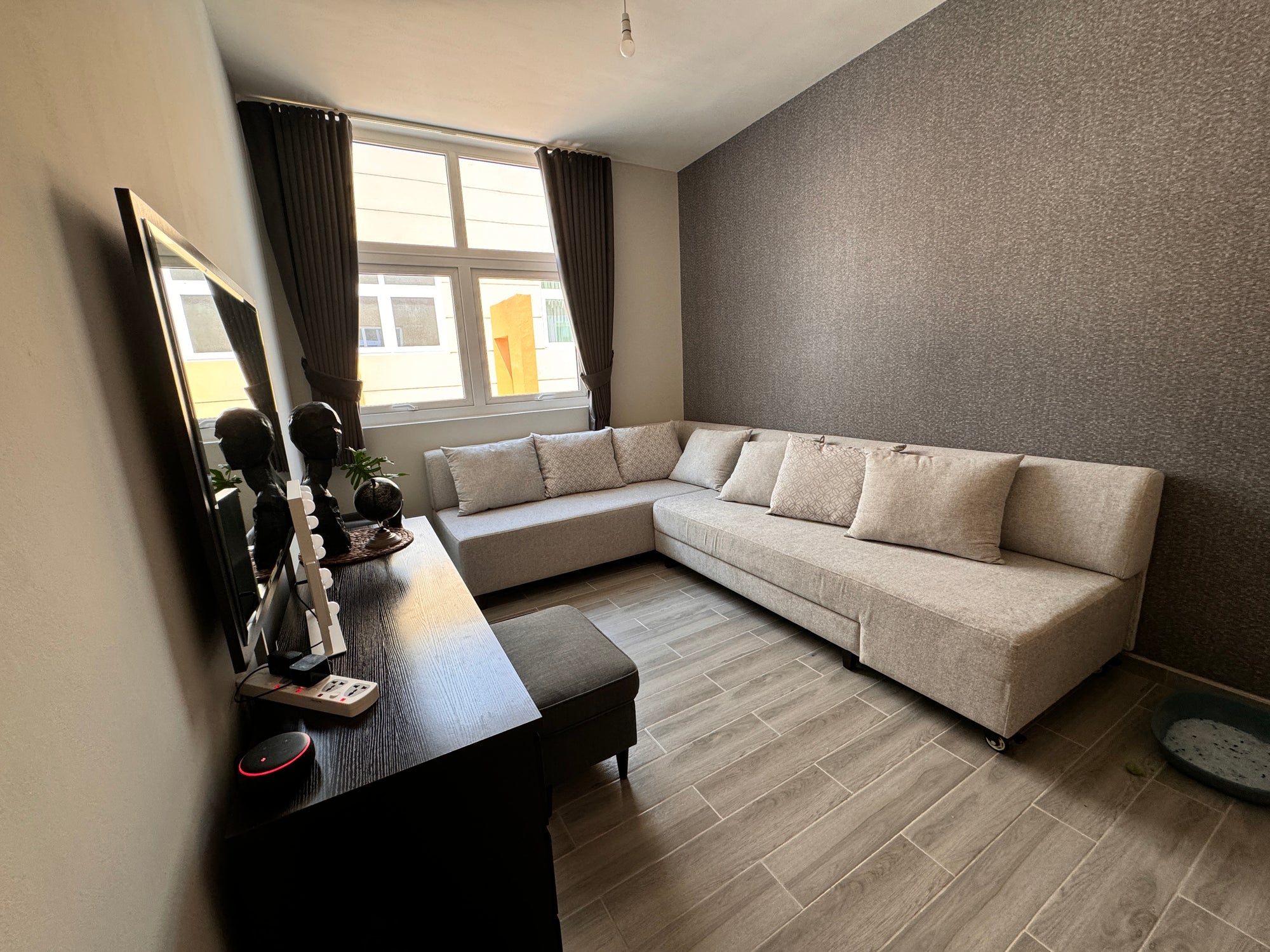 Experience ultimate convenience with smart motorized curtains and blinds. Control your window treatments via remote, smartphone app, or voice commands (Alexa, Google Home, Siri compatible). Schedule automatic opening and closing based on time or light sensors. Perfect for hard-to-reach windows, floor-to-ceiling glass walls, and modern smart homes. Whisper-quiet motors with battery backup options. Ideal for luxury Dubai villas and contemporary apartments seeking cutting-edge home automation.